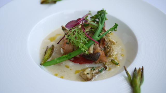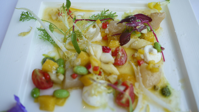 メインはイトヨリダイ 添えられた冬瓜がイトヨリダイの美味しさを引き出している