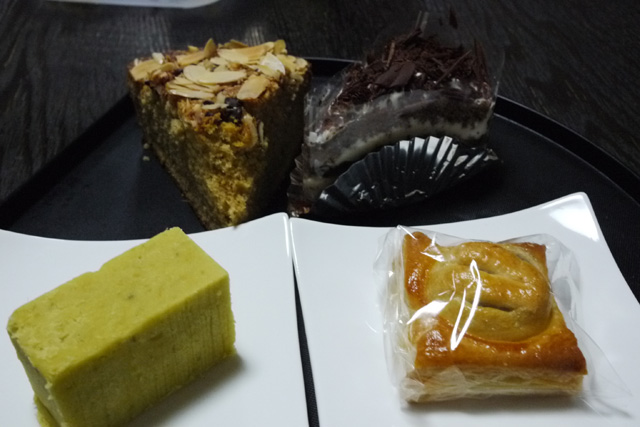 チョコレートケーキとアーモンドケーキは3個ずつ