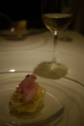 ディナーの始まりは小さなオードブルパスタから