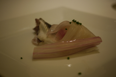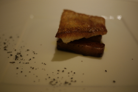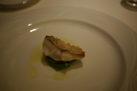 7品目:お魚はのど黒のソテー、付け合せのごぼうはバルサミコ風味