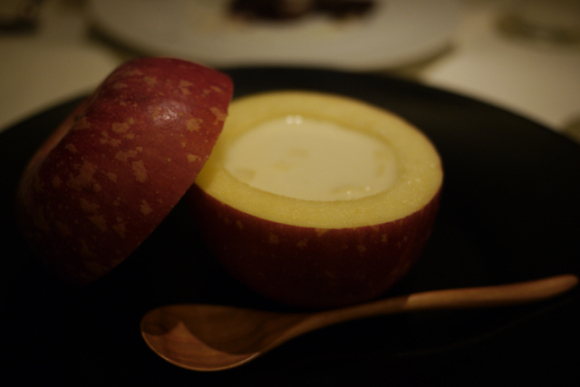 くり貫いたりんごの中にほんのり甘いスープが・・