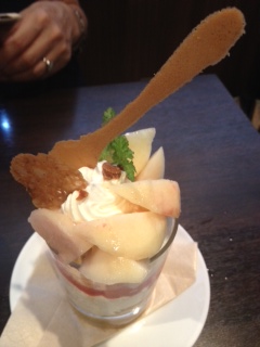 友はピーチのパフェ