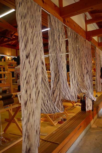 滝糸絞りと言う染め方で、太い筒に反物をきつく巻きつけていきます。