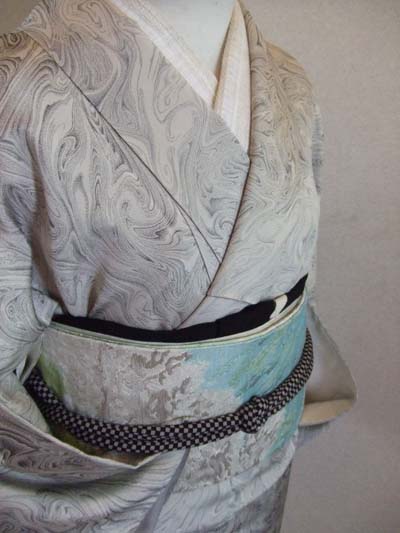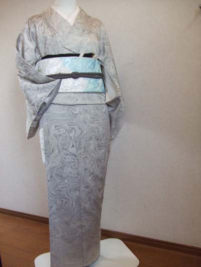 薄いグレーに墨色を流した感じが大人っぽい着物です。