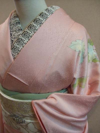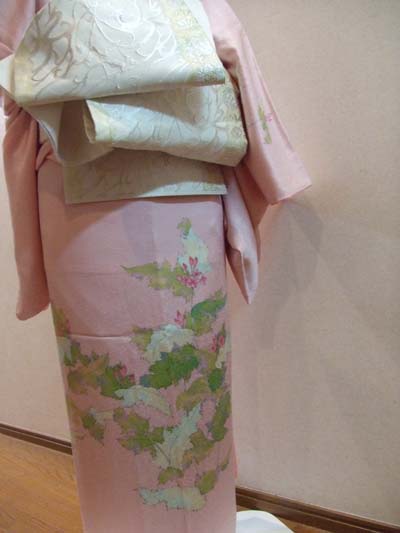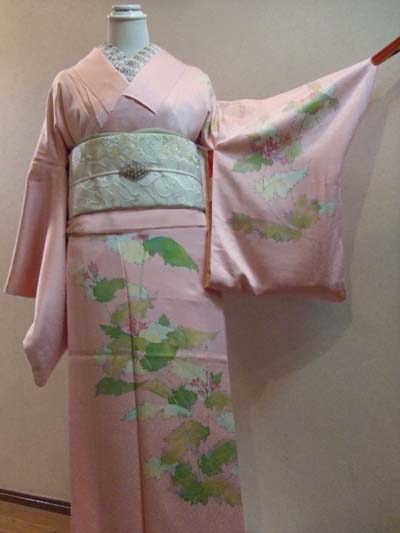 綺麗なベビーピンクの地色に、丁寧に描かれた付け下げ