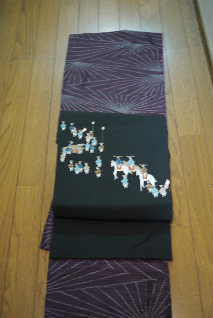 大名行列を描いた名古屋帯を合わせてみました。