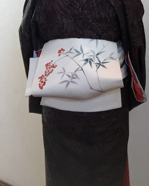 帯: 塩瀬 染め帯 お正月なので南天