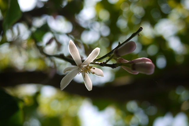 つぼみはピンクで、お花は白、そして黄色の実・・・・・